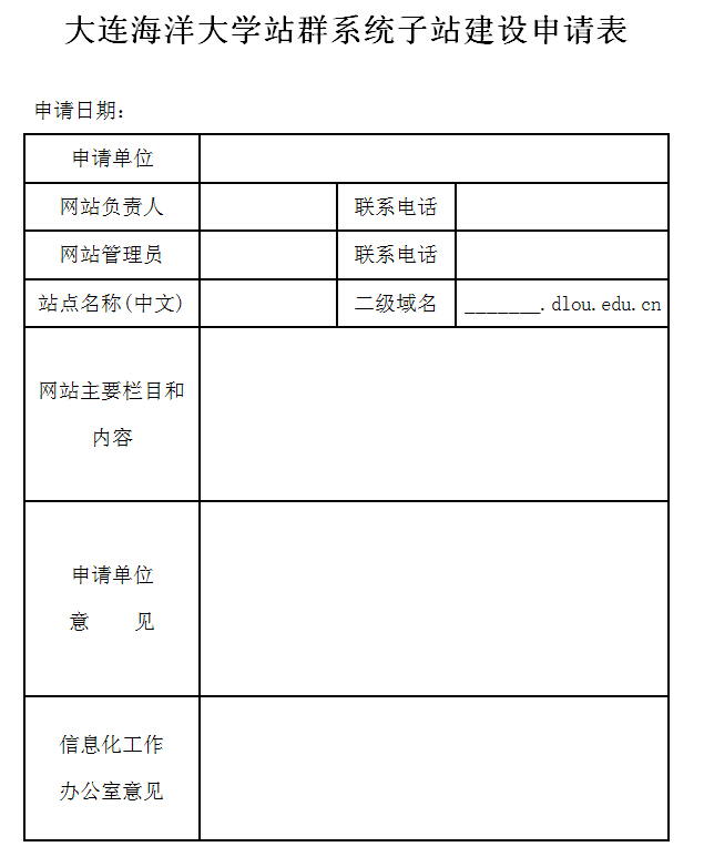 4. 申请单位签定大连海洋大学二级单位网络信息安全管理责任书,交与信息化工作办公室备案后,站点给与开通。